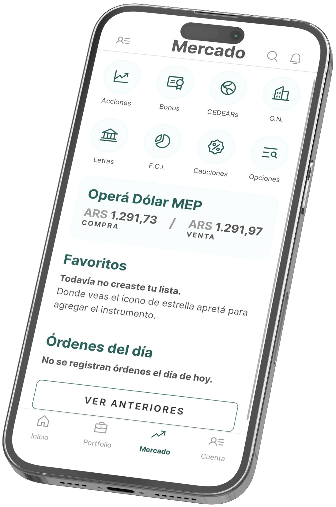Con la aplicación, vas a poder acceder a instrumentos financieros, permitiéndote operar de manera rápida e eficiente además de visualizar fácilmente tu cartera de inversión, órdenes y rendimientos.